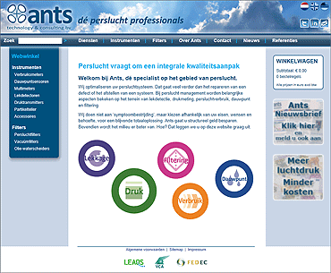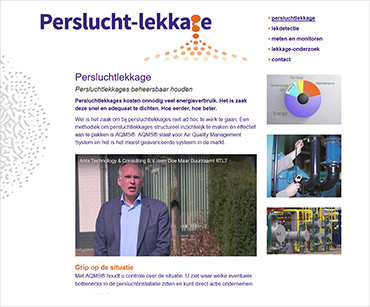 Informatieve website voor bedrijven die produceren met perslucht. Er wordt aangegeven dat