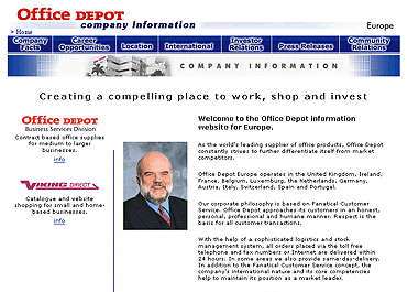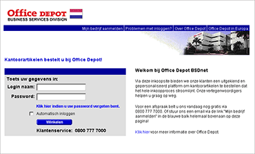 inkopers van Office Depot in Europa presenteren. De website toonde alle relevante